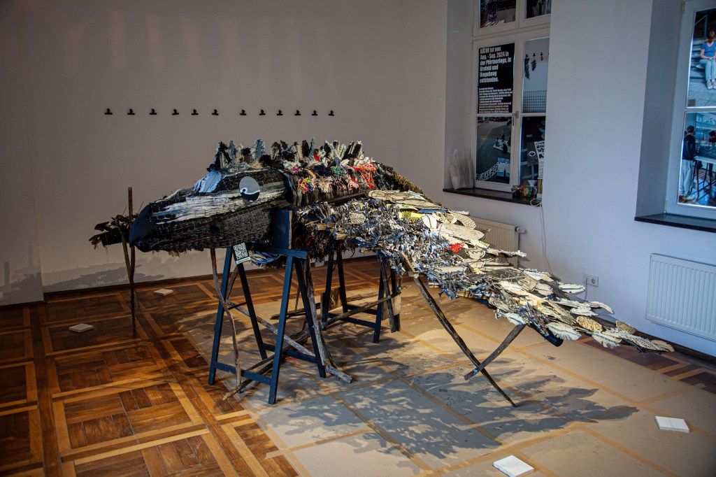 During a work scholarship of the BBK Niederrheins I created a large crow bird with the name „Käthe“ in 2 months. Schools, groups and private persons took part in the project. Käthe flew through the city for the opening.