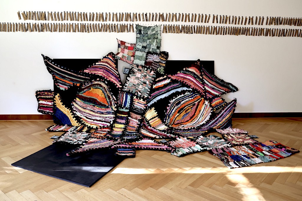 Within 3 months, parts for a woven carpet were woven on weaving machines in Haus Esters. Additional elements for the large woven rug were created in satellite campaigns distributed throughout the city. In the end, the carpet was purchased at auction by the climate foundation cooldownearth and is now part of the collection.